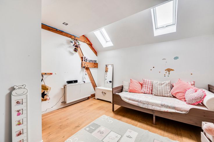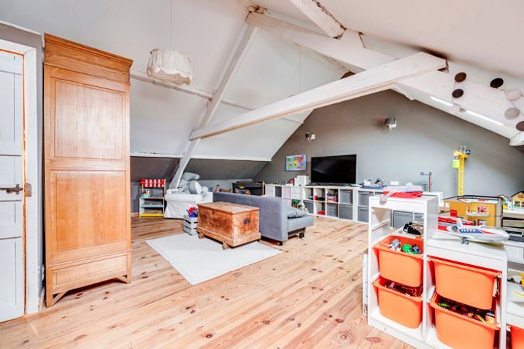 2e: 45m² slaapkamer (veel mogelijkheden voor ombouw) + 49m² zolder