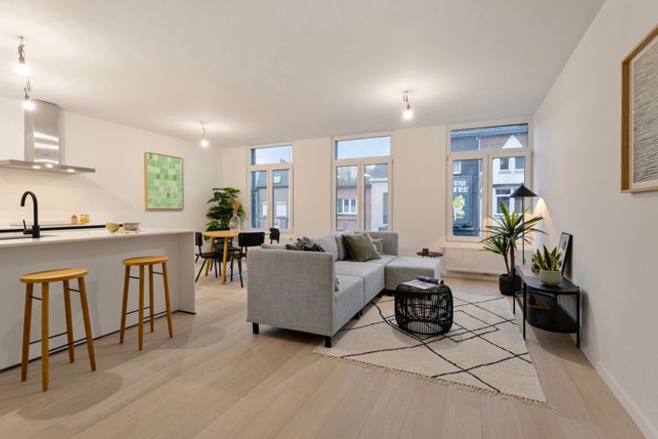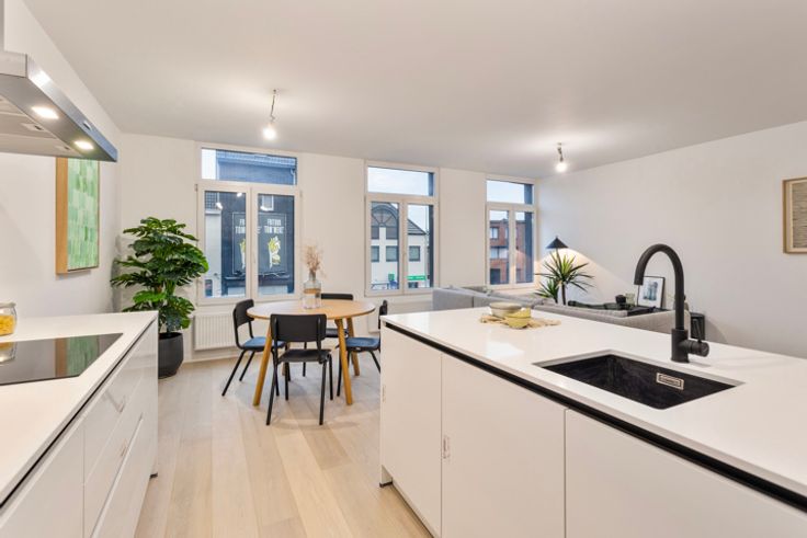 Volledig vernieuwd appartement met twee volwaardige slaapkamers en zonnig terras. Het appartement bevindt zich op de eerste verdieping van een kleinschalig gebouw van drie units en is gelegen op wandelafstand van het centrum van Lier. Het gebouw werd dit jaar volledig vernieuwd en beschikt over een uiterst gunstig energielabel. Indeling: Bij het betreden van het appartement springt meteen de verfijnde afwerking in het oog. Het appartement beschikt overal over warme eiken parketvloeren met uitzondering van de natte ruimtes. Hier werd gewerkt met kwalitatieve vloer- en wandtegels. De leefruimte vormt een mooi geheel met de volledig ingerichte keuken met eiland. De hoogwaardige keuken geniet een verfijnde touch, een keukenblad in composietsteen en is verder voorzien van alle comfort en kastruimte met volgende ingebouwde toestellen (Siemens): ijskast, diepvries, inductievuur, oven, vaatwasser en ingewerkte spoelbak. De open nachthal geeft uit op de overige ruimtes van het appartement. Er is een hanige technische bergplaats voorzien met wasvoorzieningen. Via de nachthal bereikt u de stijlvolle badkamer met inloopdouche, wastafel, toilet en handdoekradiator. Verder is er nog een apart toilet voorzien. Het geheel geniet een luxe look and feel. Achteraan bevinden zich de twee ruime slaapkamers waarvan de grootste uitgeeft op het zuidgericht terras. Bijzonderheden: Hoogwaardige renovatie; EPC: 86 kWh/m²/jaar (A-Label); Nutsvoorzieningen volledig vernieuwd (apart); Elektriciteit con