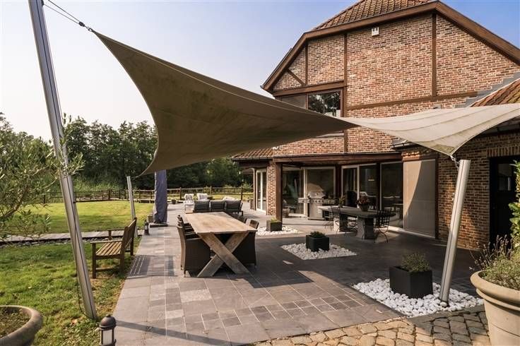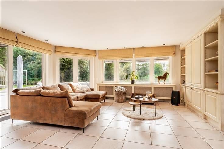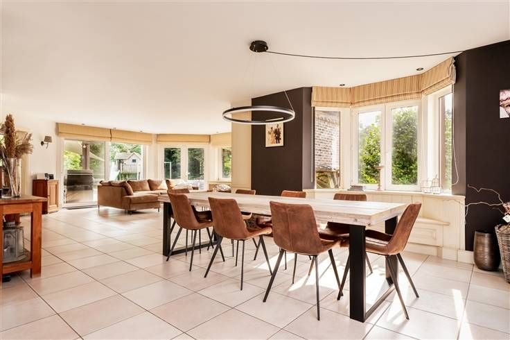 Ontdek dit uitzonderlijke en unieke pand, gelegen in een agrarisch gebied op een indrukwekkend domein van 2,3 hectare, bereikbaar via een privé-weg. Dit prachtige landhuis biedt een bewoonbare oppervlakte van 241 m² en combineert rust, luxe en comfort op een ongeëvenaarde manier. Bij binnenkomst word je verwelkomd in een ruime inkomhal die leidt naar een gezellige leefruimte van maar liefst 73 m². De nieuwe, volledig ingerichte keuken is een ware droom voor elke kookliefhebber. Verder vind je op het gelijkvloers een praktische berging met ingemaakte kasten, een wasplaats en een apart toilet. De bovenverdieping biedt via een royale overloop en nachthal toegang tot de masterbedroom, twee extra slaapkamers, een grote, luxueuze badkamer en een aparte douchekamer met toilet. Bovendien is er op de zolder nog ruimte voor een extra kamer, perfect in te richten naar eigen smaak. Geniet van de buitenlucht op het ruime terras met zonneluifel, terwijl je uitkijkt op een idyllische omgeving met een prachtige waterpartij en een overhellend terras. Ontspan in de loungeruimte met sauna, midden in de natuur, omringd door weides. Voor paardenliefhebbers is dit pand een droom met vier modulaire paardestallen en ruime weides. De grote carport biedt voldoende parkeergelegenheid, en het volledige domein is omheind, wat zorgt voor totale privacy. Bovendien ligt het pand dichtbij het Dijlepad, ideaal voor wandel- en fietsliefhebbers. Extra troeven: zonnepanelen, een