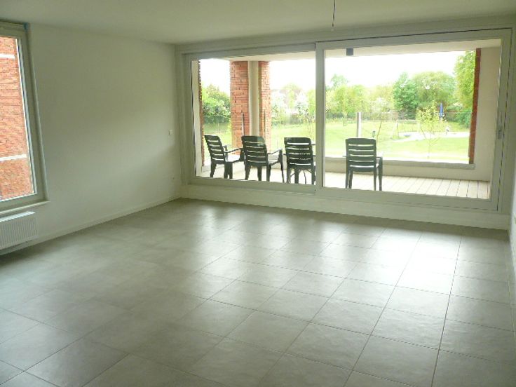 Een appartement op de eerste verdieping bestaande uit een woonkamer met open ingerichte keuken, 1 slaapkamer, badkamer, overdekt terras, lift, wasplaats, kelderberging, overdekte autostaanplaats.