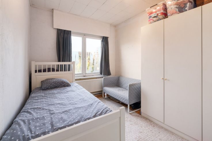 De charmante woning is te renoveren. Op het gelijkvloers bevindt zich de inkomhall, dubbele woonkamer, volledig ingerichte keuken, afgesloten toilet, eetkamer met directe toegang tot de tuin en een bijkeuken. Op de eerste verdieping zijn er drie slaapkamers en een badkamer (met toilet, lavabo en douchecel). Centrale verwarming op gas.