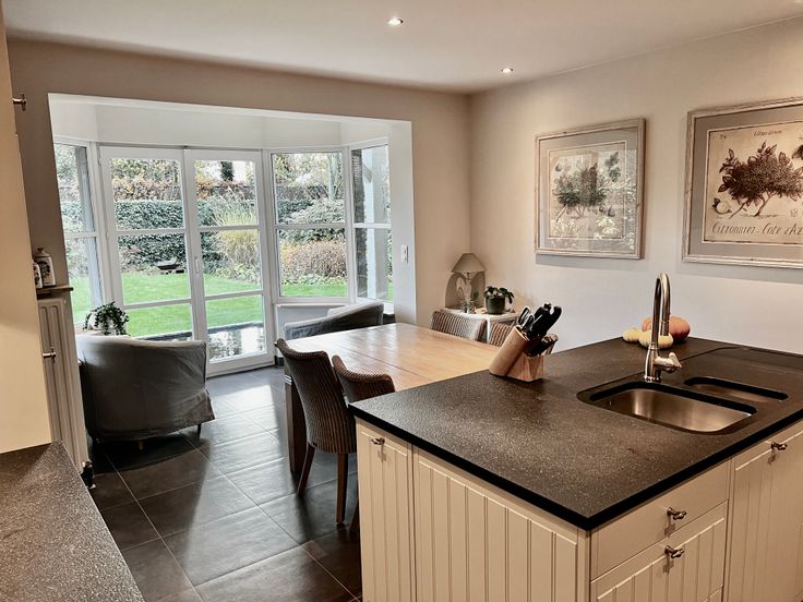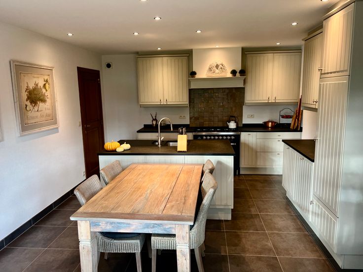 -landelijke keuken (23m2) met spoeleiland, vaatwas, koelkast en Boretti