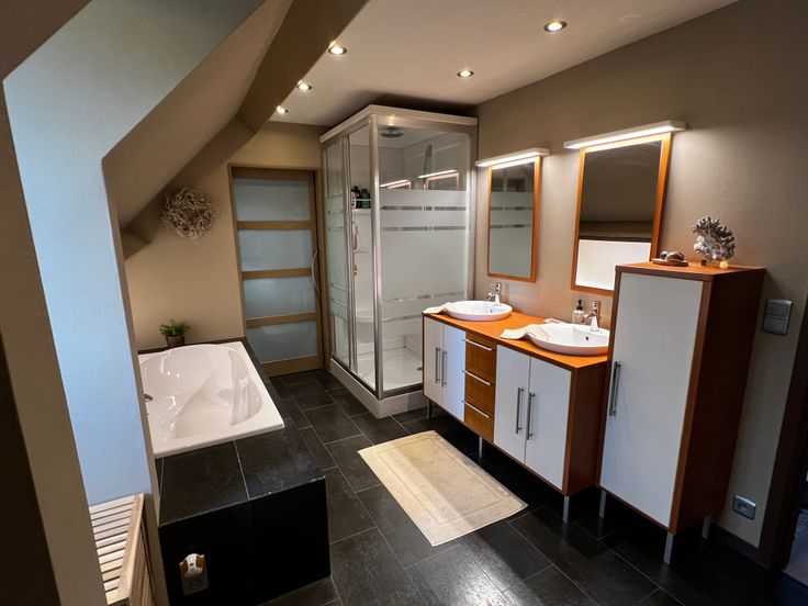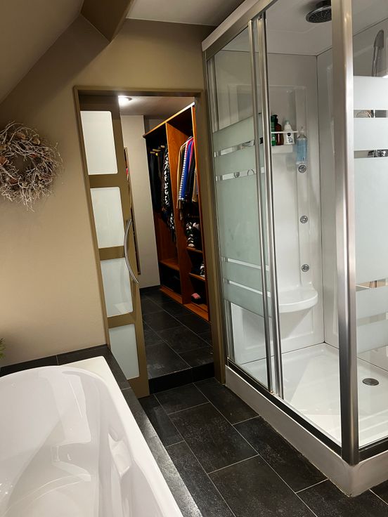 -badkamer (11m2) bad, douche, dubbel lavabomeubel en wc