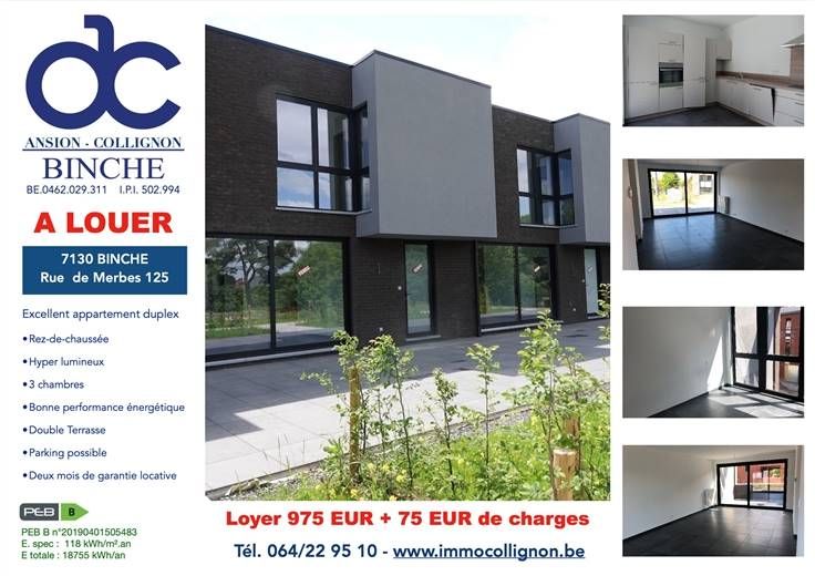 Sorry er is geen nederlandse vertaling beschikbaar. Binche, à louer, au rez-de-chaussée de la résidence sécurisée "Clos du Mimosa", appartement duplex de standing, comprenant :