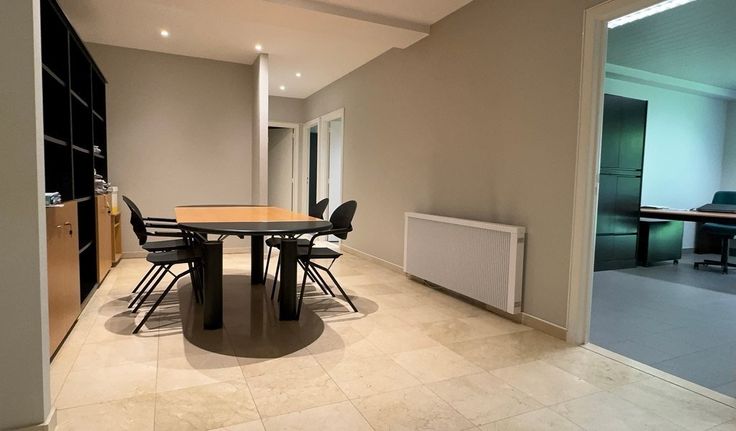 Specificaties: volledig ingedeelde, gemeubelde kantoorruimte met kitchenette en privatief sanitair, pvc schrijnwerk met dubbel glas en rolluiken, verlaagd plafond, vloercontactdozen, keramische en natuursteen vloer, elektrische verwarming met convectoren, videofoon, rookdetectie, lift