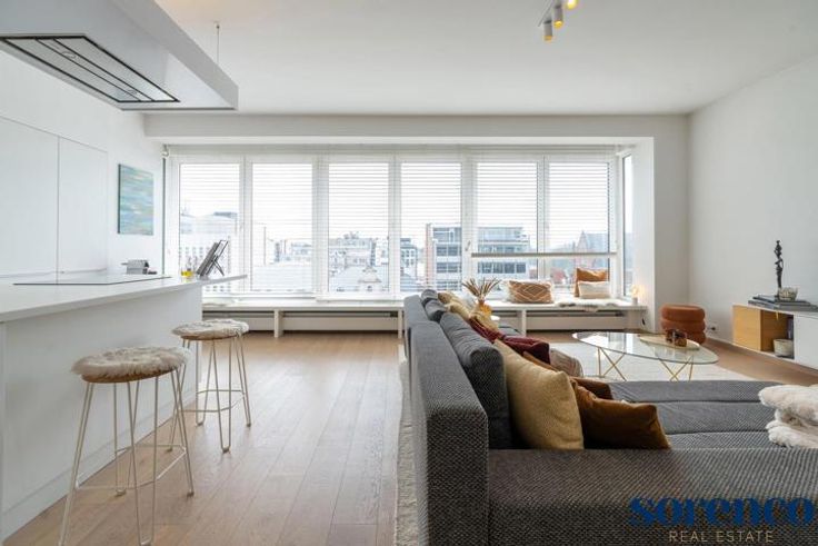Ontdek dit lichtrijk en gerenoveerd 2 slaapkamer appartement ca. 120m² op parket met magnifiek weids uitzicht te Antwerpen centrum.