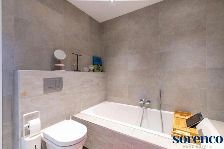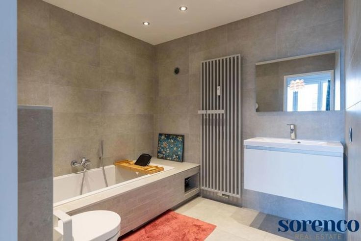INDELING: U komt binnen in de ruime inkomhal met apart gastentoilet voorzien van een handenwasser. Aansluitend heeft u de lichtrijke en aangename leefruimte op parket, open ingerichte keuken voorzien van opbergkasten, ontbijthoek, kookeiland en Smeg-toestellen: kookplaat, dampkap, afwasmachine, ijskast, diepvries, combi-oven en een spoelbak. Apart berging/wasplaats. Achteraan 2 ruime slaapkamers op parket, waarvan één met een douchekamer. Aansluitend aan de masterbedroom heeft u in de ingerichte badkamer voorzien van een ligbad, toilet, lavabo in een meubel.