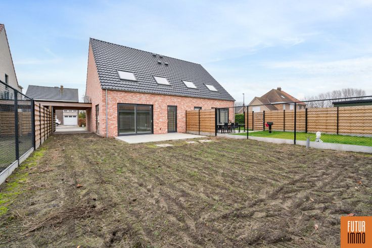 Mogelijkheid tot aankoop onder 6% BTW. Gezellige instapklare gezinswoning te Waardamme (Oostkamp), opgetrokken in een landelijke architectuur in de nabijheid van winkels, bakker, beenhouwer en toch dicht bij een bosrijke groene omgeving, waar men tal van wandel- en fietspaden heeft. Duurzaamheid en energiezuinigheid zijn kenmerkend, met o.a ventilatiesysteem D, vloerverwarming, warmtepomp en zonnepanelen. Functionele woonindeling: inkomhal met gastentoilet en vestiaire, lichtrijke leefruimte bestaande uit eetplaats, zithoek en open keuken met eiland voorzien van alle hedendaags comfort, aansluitend is een praktische berging/wasplaats voorzien. Op de eerste verdieping bevinden zich de nachthal, apart toilet, 3 ruime slaapkamers en een badkamer. Zolder toegankelijk via zolderluik. Tuin met terras, carport. * Voor meer informatie of een bezoek ter plaatse : info@futurimmo.be - 0470 50 50 50.