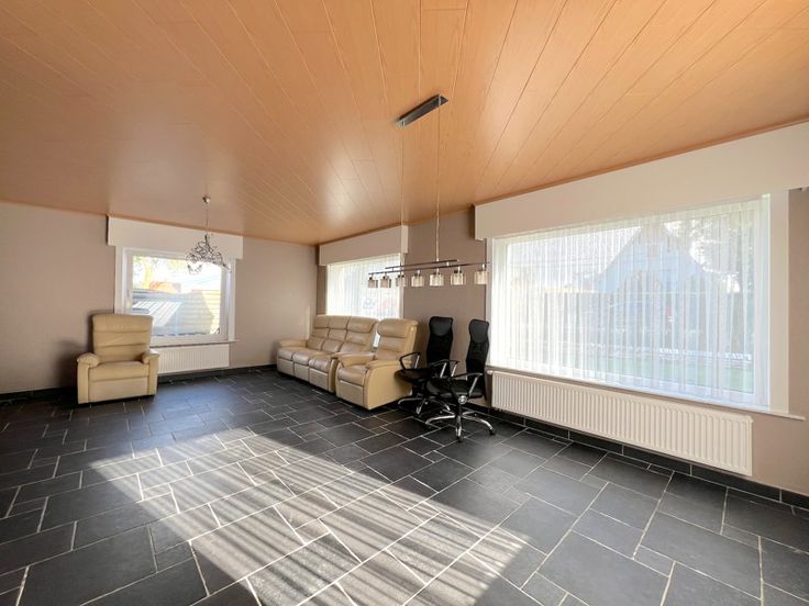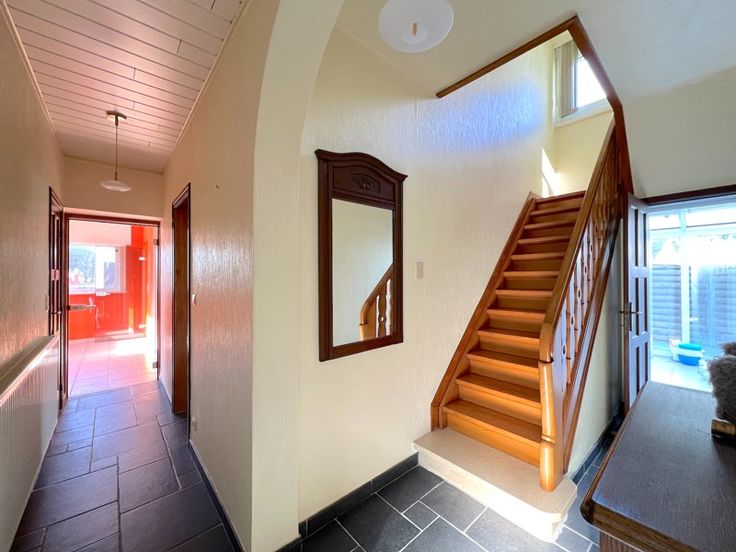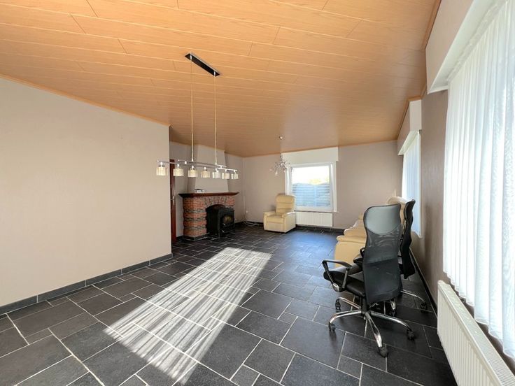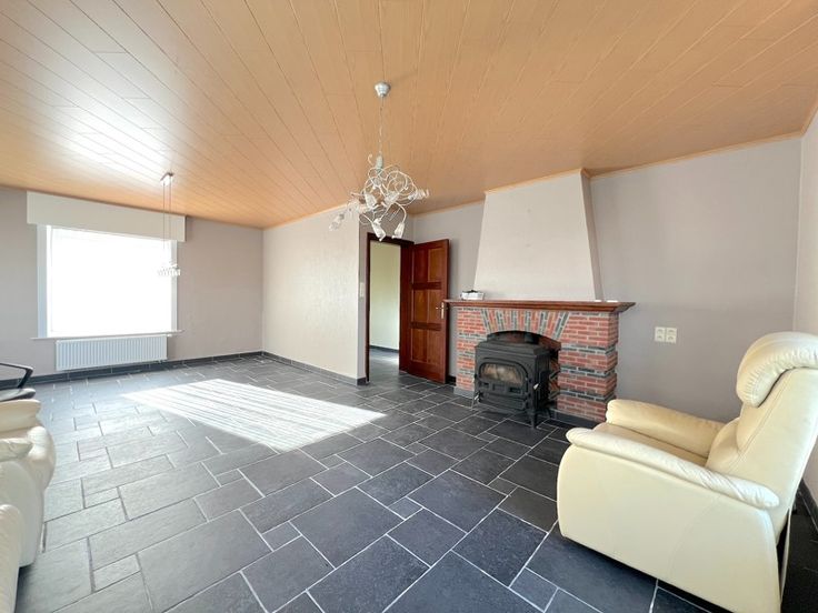 Deze woning met ruime garage en loods te Ichtegem met drie slaapkamers resideert op een zonnig perceel van 1.665 m2 langs de invalsweg Torhout-Oostende. Zo bereikt u vlot diverse faciliteiten en de autosnelweg. De woning beschikt o.a. op het gelijkvloers over een ruime lichtrijke leefruimte met kachel. Vanuit de inkom/gang treft u een berging/wasruimte, een apart toilet, een veranda, de keuken met aanpalend een eetruimte en apart bureel. Op de eerste verdieping bevinden zich drie slaapkamers waarvan één met badkamer en ingebouwde kasten. Daarnaast beschikt de woning over een tweede badkamer en berging op het eerste verdiep. Via een valtrap komt u op de ruime bergzolder. Buiten aan de woning treft u langsvoor een aangelegde tuin die toegang verschaft naar achter aan de woning waar er zich een ruime garage/bergruimte bevindt met een loods achterliggend. Tevens beschikt de woning over 20 zonnepanelen en een thuisbatterij. EPC 320 kWh/m2 jaar (UC 3384734) Label D, waardoor er geen renovatieplicht van toepassing is. Deze topper is zeker een bezoek waard!