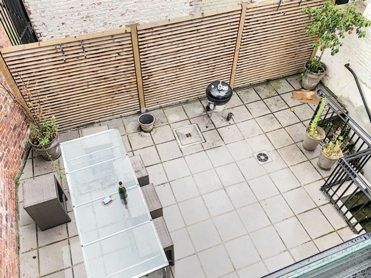 Duplex appartement van 140m² in een herenhuis. Bestaande uit: inkomhal, woonkamer, superuitgeruste open keuken, 2 slaapkamers (20m² en 25m²), 2 badkamers, 2 toiletten. Kelder en gemeenschappelijke wasruimte met watertoevoer en twee wasmachine- en drogerpunten voor elk appartement. Buiten fietsenstalling en vuilnisbak voor het gebouw. Individuele verwarming op gas. Internet, telefoon en TV-kabels. Videofoon. Servicekosten: 45€. PEB: D+. Informatie en bezoeken: Agence FullHouse, 02/ 669.43.62 info@flho.be