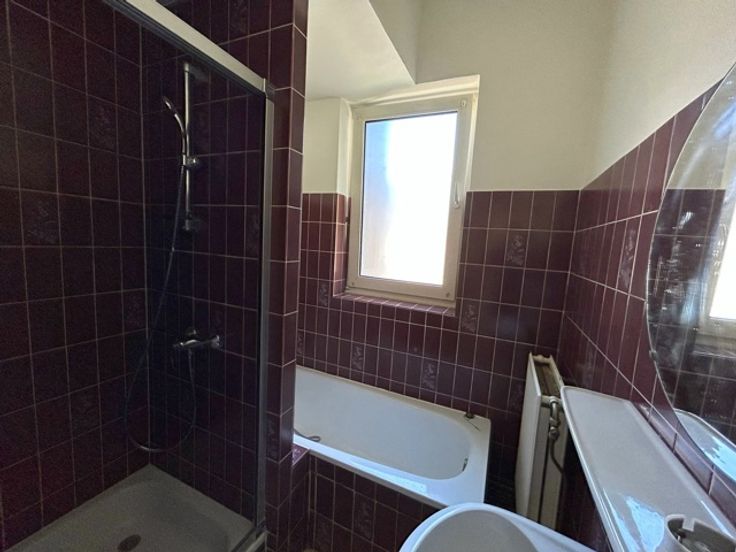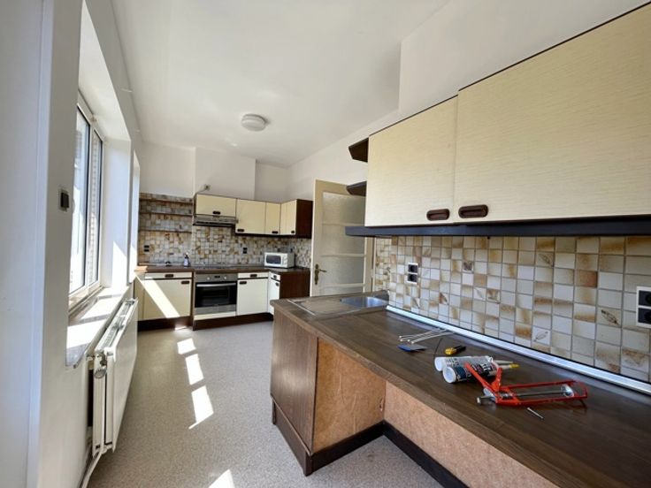 Ville-Haute - Grand appartement 2 chambres avec garage 1 voiture situé en centre-ville comprenant: 3ème étage: Hall d'entrée - Living - cuisine 1/2 équipée - Balcon à l'avant - Hall de nuit - 2 chambres - SDB + douche - WC Individuel - Débarras - garage 1 voiture (Box fermé) Actuellement loué 60€/mois - Châssis PVC DV - CC Gaz - PEB Label C 193 Kwh/m².an - Ascenseur - 1 appartement/étage - Provisions: (communs) - Compteurs séparés - Appartement libre à l'acte authentique - Faire Offre à partir de 110.000€ (L'agent n'a aucun pouvoir de décision quant aux offres reçues)