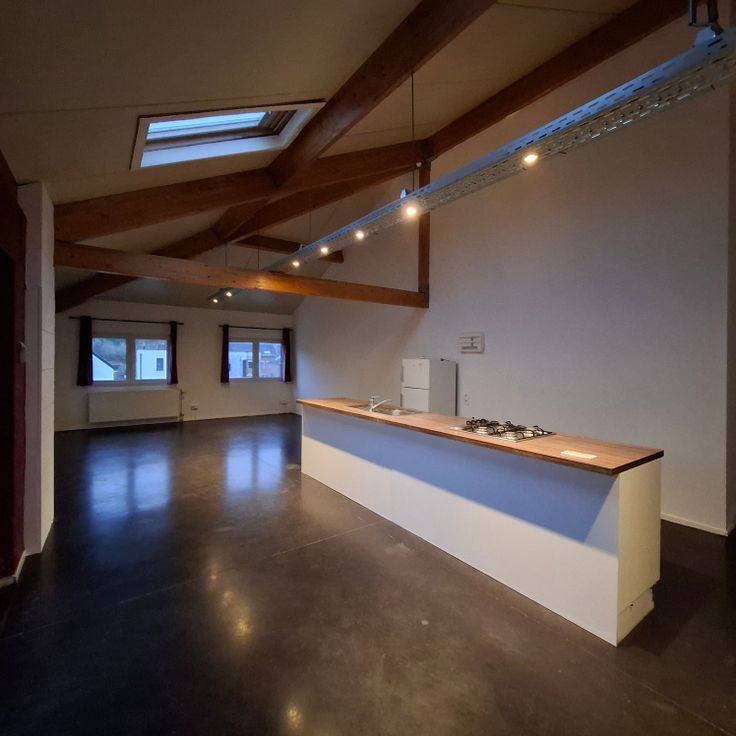 Très agréable loft situé au 2ème étage comprenant salon/cuisine américaine (four, taques gaz, frigo/surgélateur 1 raccordement pour lave vaisselle), un bureau,2 chambres, 1 salle de bain, 1 salle de douche, 1 wc séparé, 1 buanderie et une terrasse.