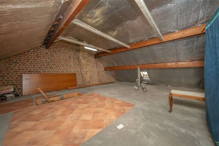 Zolder (25m2): te bereiken via een houten trektrap in de nachthall, de dakvlakken werden geïsoleerd, betonvloer, mogelijkheid bijkomende slaapkamer in te richten mits het plaatsen van een vaste trap