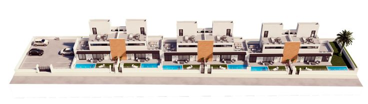 Het complex bestaat uit 12 villa's met 2 slaapkamers en 2 badkamers, en een hoekvilla met 3 slaapkamers en 3 badkamers. Deze woningen zijn voorzien van terrassen met dubbele oriëntatie, voor- en achtertuin met natuurlijk gras, privédakterras gelegen op het zuiden, privézwembad van 5,5 x 2,5 m (optioneel), en een parkeerplaats naar keuze inbegrepen in de prijs. De villas zijn gebouwd volgens de hoogste kwaliteitsnormen, met voorinstallatie voor airconditioning, douchewanden in de badkamers, en zomerkeuken en douche op het dakterras. Luxe wooncomplex gelegen in de omgeving van Orihuela Costa, om precies te zijn in de buurt van Villamartin, een bevoorrechte locatie omringd door drie prachtige golfbanen (Villamartin, Las Ramblas en Campoamor), en op slechts tien minuten van de mooiste stranden van Orihuela Costa. Dit maakt dit gebied tot een buitengewone omgeving om te genieten van de zon en het leven in Spanje. Op slechts een paar minuten lopen bevinden zich een aantal voorzieningen, waaronder het winkelcentrum "La Fuente", met een overvloed aan restaurants, bars en winkels.Het complex bestaat uit 12 villa's met 2 slaapkamers en 2 badkamers, en een hoekvilla met 3 slaapkamers en 3 badkamers. Deze woningen zijn voorzien van terrassen met dubbele oriëntatie, voor- en achtertuin met natuurlijk gras, privédakterras gelegen op het zuiden, privézwembad van 5,5 x 2,5 m (optioneel), en een parkeerplaats naar keuze inbegrepen in de prijs. De villas zijn gebo...