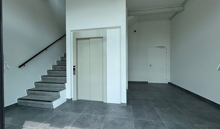 Specificaties: glasgevel, aluminium schrijnwerk met dubbele beglazing, polybetonvloer, warmtepomp, gemeenschappelijke bovengrondse parking met laadpalen, casco oplevering