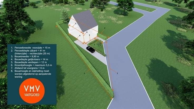 VMV-Vastgoed biedt deze bouwgrond (5a 34ca) voor een halfopen bebouwing in een rustig gelegen wijk in het charmante Beigem aan. Bouwvoorschriften: voorgevelbreedte 9,90m - maximale kroonlijsthoogte 5,50M - dakvorm: hellend dak 45° - bouwdiepte 14 meter op gelijkvloers - 12 meter op de verdiepen. 2 bouwlagen en zolderruimte onder hellend dak. De verkavelingsvoorschriften kan u terugvinden op www.vmv-vastgoed.be. Voor concrete vragen kunt u ook de dienst Omgevingsbeleid van Grimbergen raadplegen - 02 260 12 16 - omgevingsbeleid@grimbergen.be.