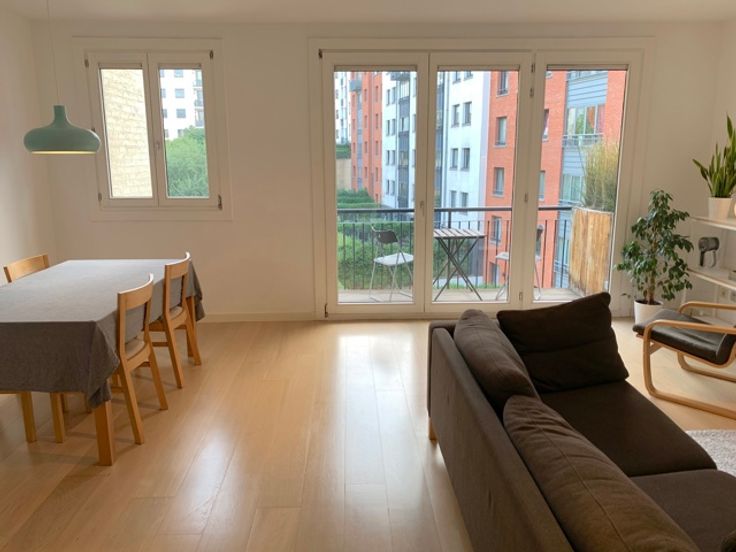 Licht en rustig appartement op de 3e verdieping van een gebouw uit 2004 met lift en een totale oppervlakte van ± 85 m². Het bestaat uit : inkomhal, grote woon/eetkamer met ± 3m² terras op het zuiden, volledig ingerichte keuken, apart toilet, 2 slaapkamers met inbouwkasten, badkamer en wasruimte. Een kelder maakt deze woning compleet. Extra €100 voor de parkeerplaats. PEB : B. Schitterende ligging vlakbij het Flageyplein / Etangs d'Elsene. Gemeenschappelijke tuin en aangrenzend park. Gemakkelijke toegang tot bushaltes 95, 71, 59. Voorziening voor bouwkosten en water: 120€/maand. Individuele gasboiler, elektriciteit, internet etc. te betalen door huurder. Beschikbaar vanaf 1 februari 2025.