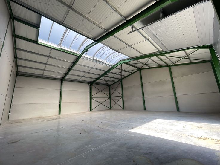 De opslagruimte met een vrije hoogte variërend tussen 6 m en 7,40 m is toegankelijk via een automatische sectionale poort (4,50 m x 4,50 m) met afzonderlijke toegangsdeur. Daarnaast is de loods voorzien van een lichtstraat met rookluik, de nodige elektriciteit en LED-verlichting. Ruime parkeer- en manoeuvreerruimte voorzien op het terrein.