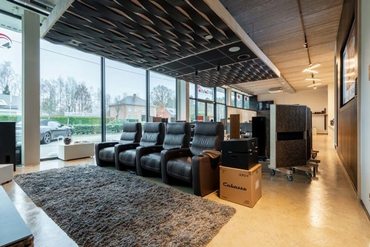 Het betreft de rechtse gelijkvloerse ruimte in het complex welke thans werd ingericht met showroom en bureauruimte, aparte belevingsruimtes, kitchenette en apart toilet, alsook stockageruimte.