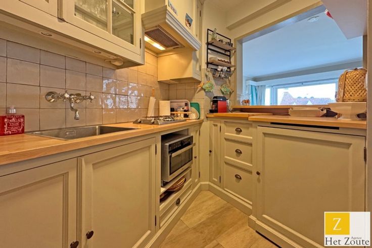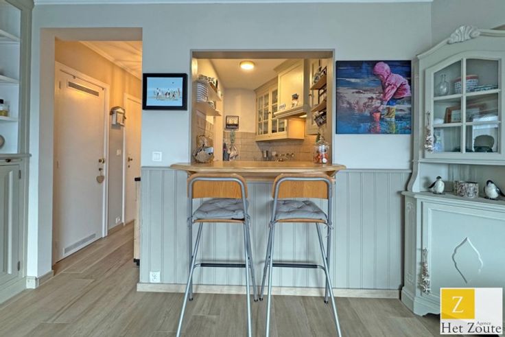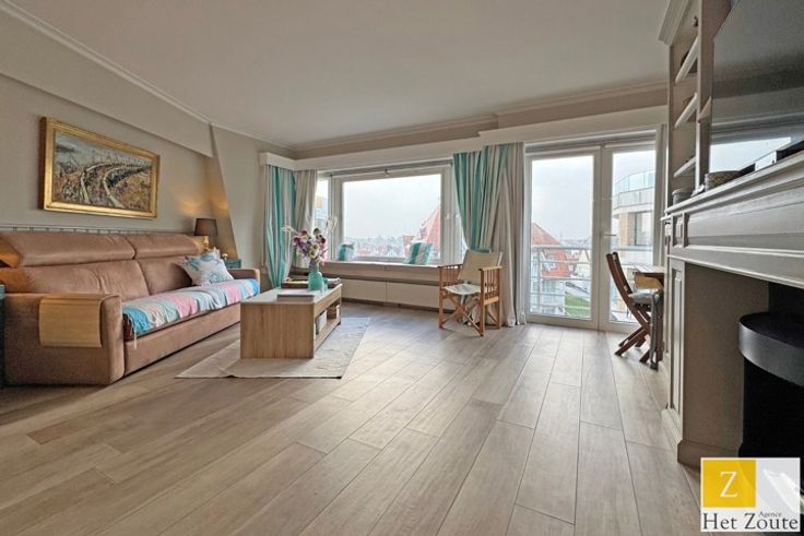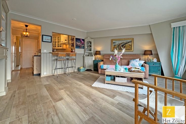 Gezellige studio te koop, gelegen in het hart van het commerciële centrum van het Zoute, met een prachtig open zicht over de omgeving.