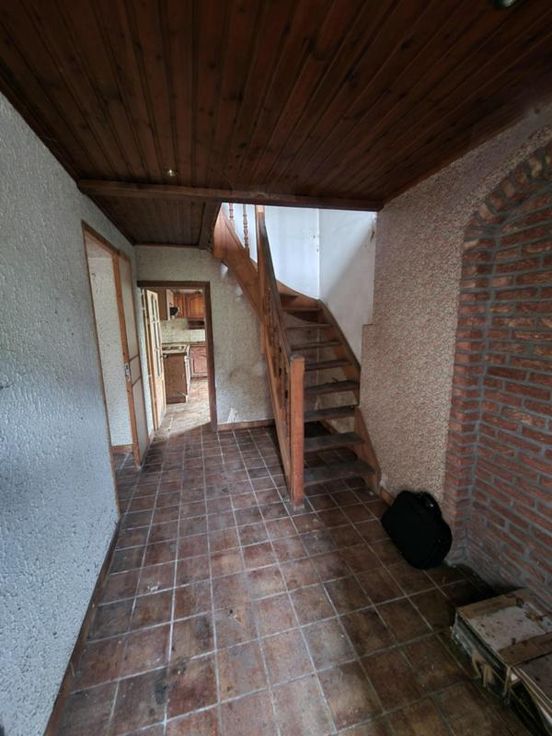 Maison d'habitation 3 façades avec vaste allée à l'avant et jardin à l'arrière. Le bien se compose : -Au sous-sol de petites caves -Au rez-de-chaussée du hall d'entrée, d'un wc, du salon, de la salle à manger, d'une cuisine, d'une salle de bain et d'une petite pièce de vie -Au premier étage d'un large pallier et de deux chambres -D'un grenier accessible par trappe avec échelle -D'un garage POUR LES VISITES, MERCI DE CONTACTER L'ETUDE AU 0495/54.60.68