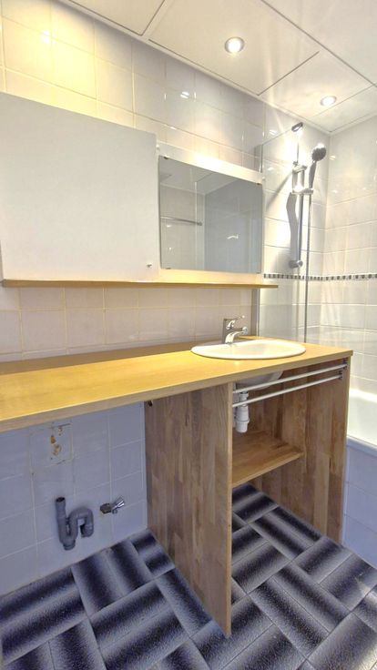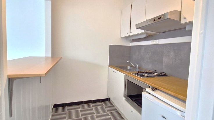 Le bien se compose d’une cuisine équipée en très bon état avec des meubles fonctionnels, une taque au gaz, un micro-ondes et un évier. L’espace de vie comprend un living spacieux avec un coin chambre, offrant une organisation pratique et lumineuse. La salle de bain est dotée d’un évier ainsi que d’un espace prévu pour une machine à laver. Vous trouverez également des placards de rangement intégrés pour optimiser le rangement. Le studio est équipé d’un système de vidéophonie pour garantir confort et sécurité.