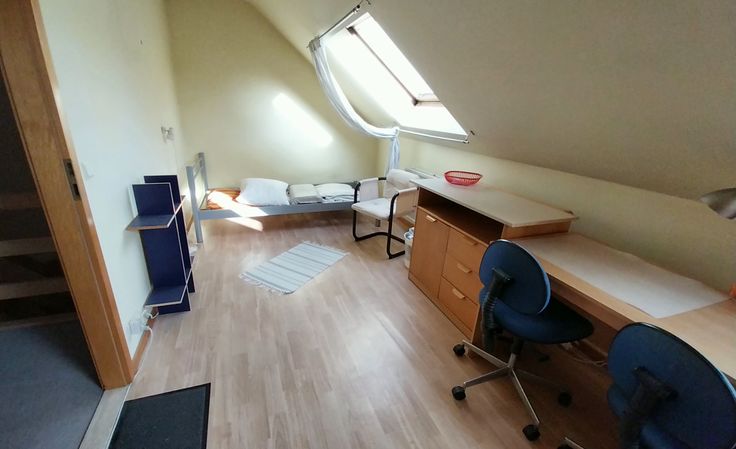 Au 2ème étage, 1 chambre de 27 m² et 1 chambre de 15 m² transformée en kot d'etudiant, avec salle de douche et WC.