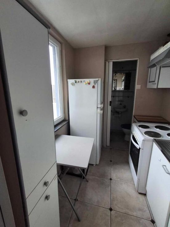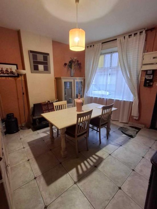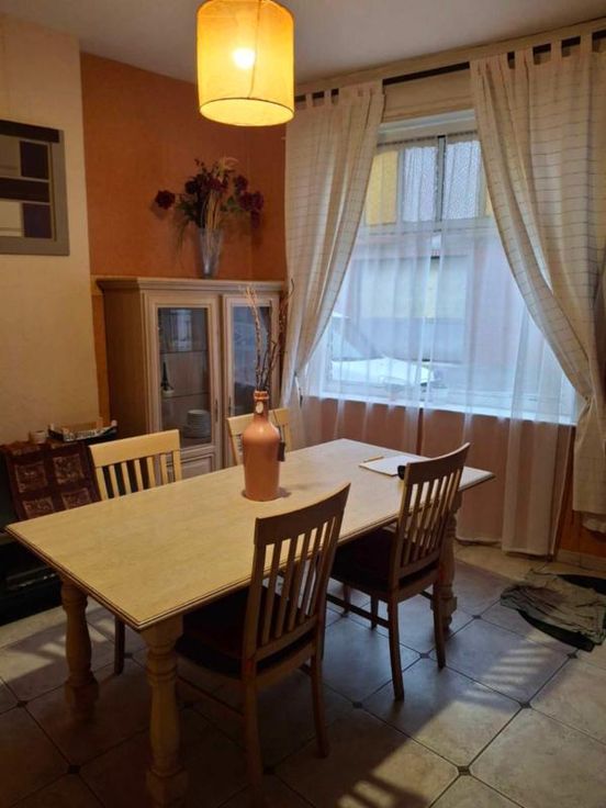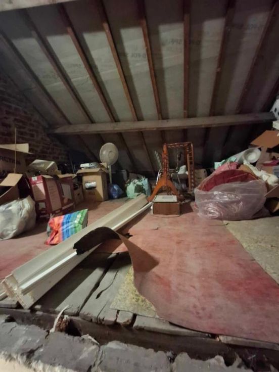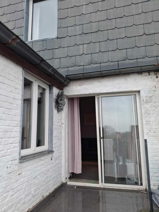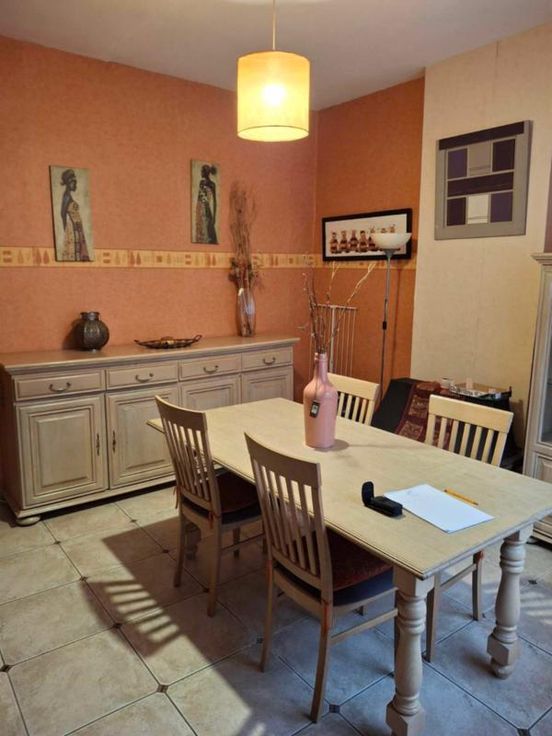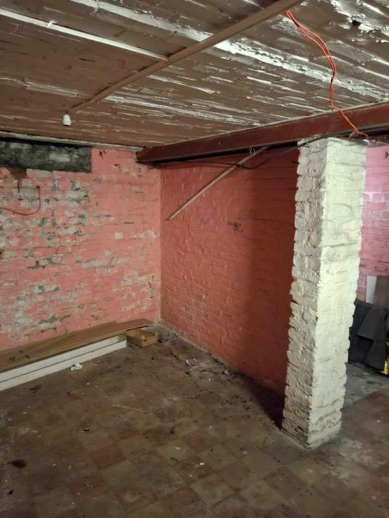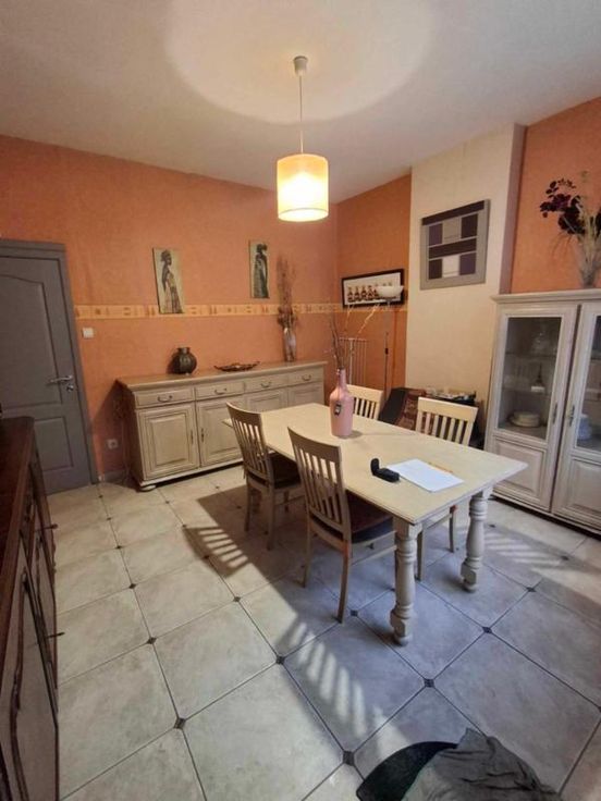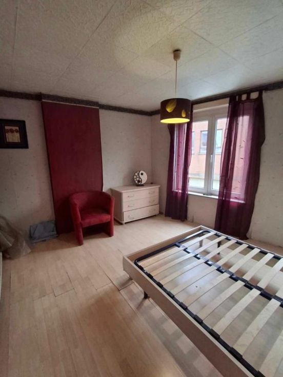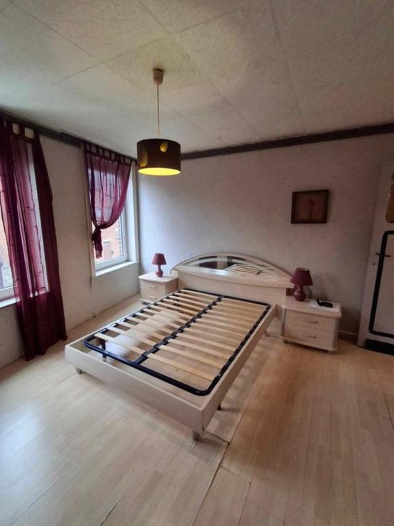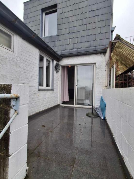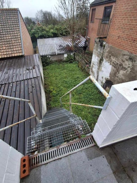 une maison d'habitation à restaurer Un hall d’entrée/salle à manger(4/3.5 =14m2) Un salon (3.70/3.97 = 14,68m2) Une petite cuisine non équipée (1.89/2.3=4.34m2) Une toilette avec douche (1/1.89=1.89m2) Une terrasse – (accès au jardin en contrebas ) 3 caves en sous-sol (on peut se tenir debout- l’accès au jardin a été rebouché avec des blocs mais est possible) ETAGE : Chambre côté jardin quickstep en bon état- et accès au grenier ( 3.97/3.70=14.68m2) Chambre côté rue (3.85/3.79= 14.59m2) Grenier non isolé aménageable DIVERS : 2 poêles au gaz au Rez, les châssis Rez- avant sont simple vitrage-le reste des châssis est en PVC blanc double vitrage et datent de +-2012, le boiler eau chaude se trouve dans la cave )
