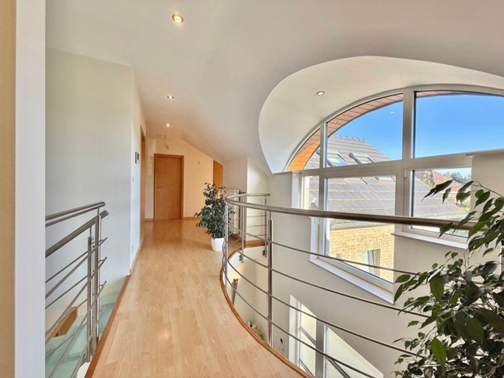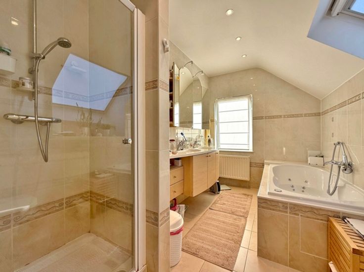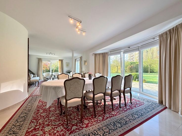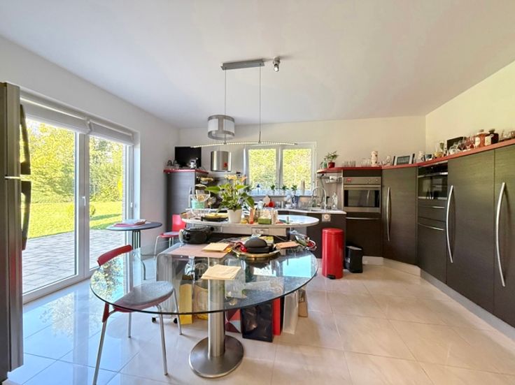 Dans un quartier résidentiel et verdoyant à proximité de Ban Eik, magnifique villa 4 façades de +/- 245 m² sur un terrain de 24 ares . Elle se compose comme suit; le rez-de-chaussée vous offre un hall d'entrée, séjour de +/- 50 m², cuisine super équipée avec coin à déjeuner, buanderie, et bureau. Le 1er étage comprend un hall de nuit, une suite parentale (se composant d'une chambre avec dressing et salle de bain), 4 chambres, un dressing, une salle de douche et un bureau. Garage deux voitures avec porte télécommandée. Nombreuses caves sous toute la maison. PEB: 162 kWh/m²/an. Libre le 01/01/2025.