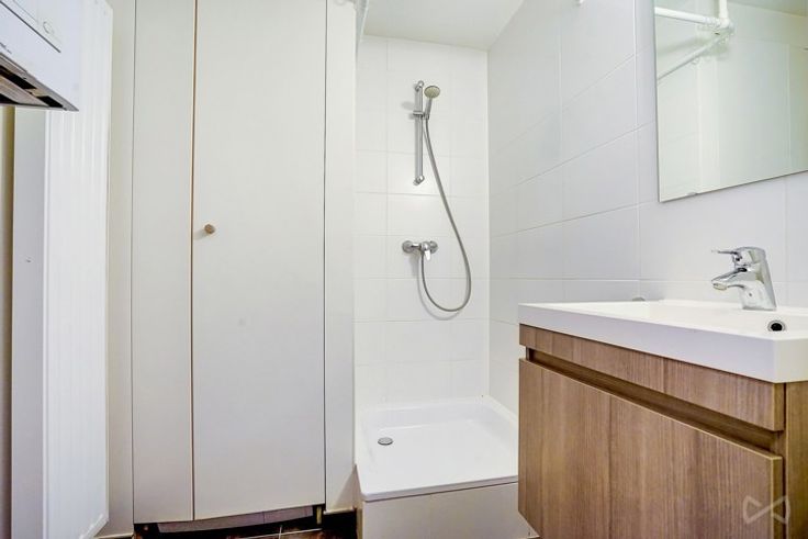 Gelegen op de 1e verdieping van een gebouw met lift, bestaat het uit: inkomhal, woonkamer met super ingerichte open keuken, douchekamer, apart toilet, wasplaats, kelder en fietsenberging.