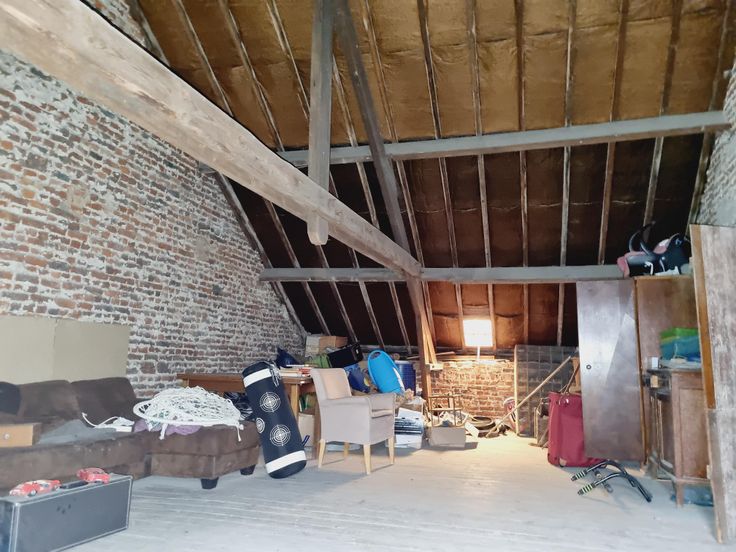 Une rénovation de la toiture devra être prévue,le deuxième étage actuellement grenier de 100 m2 accueillera plusieurs idées d'aménagement.