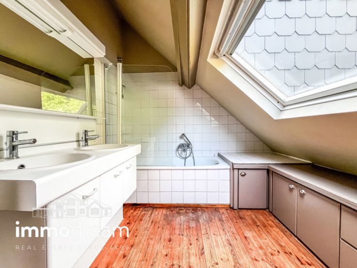 Uccle, quartier "Pêcherie" (proximité place St Job - Lycée Français - Ecole CE), charmante maison sur 2 niveaux comprenant au rez-de-chaussée: hall, séjour avec accès terrasse/jardin de +/- 60m², salle à manger, cuisine semi-équipée et wc séparé; au 1er étage: 2chambres de +/- 11 et 9m² + bureau ou 3ème petite chambre, salle de bains + cave en sous-sol . Double vitrage, chauffage gaz, électricité conforme, PEB: F; Infos et visites: 0472 845 225 - 02 374 41 03