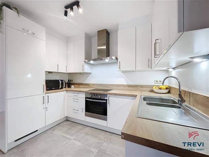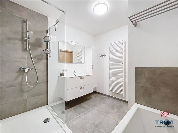 Sorry er is geen nederlandse vertaling beschikbaar. Splendide appartement 2 chambres de construction récente (2020) basse énergie situé au 2e étage d'un bel immeuble de standing avec ascenseur dans un nouveau quartier résidentiel vert et paisible proche du centre ville. Il se compose d'un sas d'entrée avec vestiaire vers le grand séjour lumineux de 35 m² et la jolie terrasse bien orientée qui se prolonge jusqu'à la chambre avec un double accès extérieur depuis le séjour et la chambre. Une jolie cuisine ouverte entièrement équipée. Hall de nuit carrelé vers les deux belles chambres de 12 et 10 m² sous beau parquet ainsi qu'une belle salle de bain contemporaine de 6 m² composée d'une cabine de douche, d'une baignoire, d'un radiateur porte serviettes et d'un meuble simple vasque. Toilette séparée. Buanderie. Emplacements de parking au sous sol et cave en option. Double vitrage pvc. Vidéophone. PEB A. Électricité conforme. Faire offre à partir de 270.000 €. Infos et visites au 02/355.50.55.