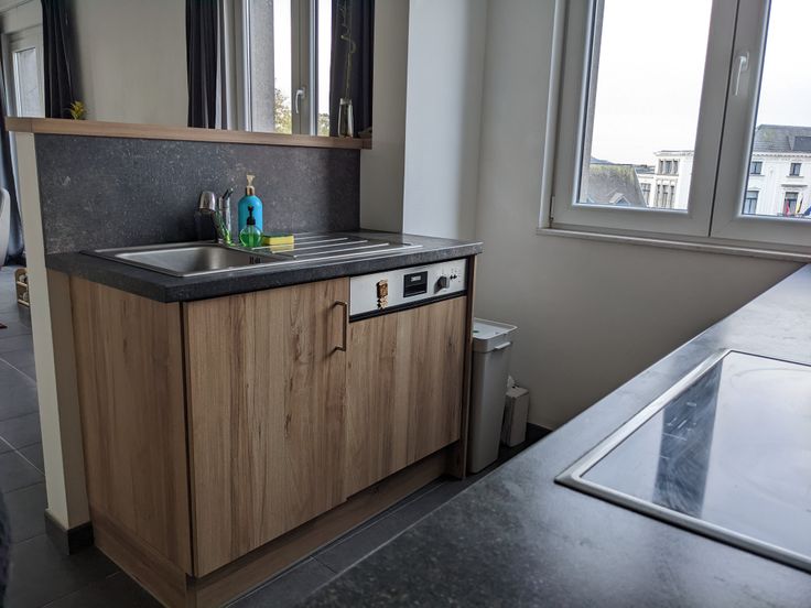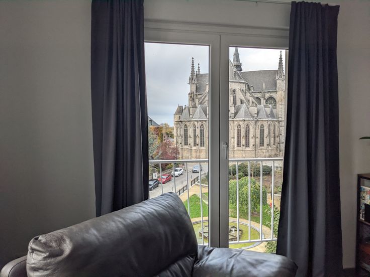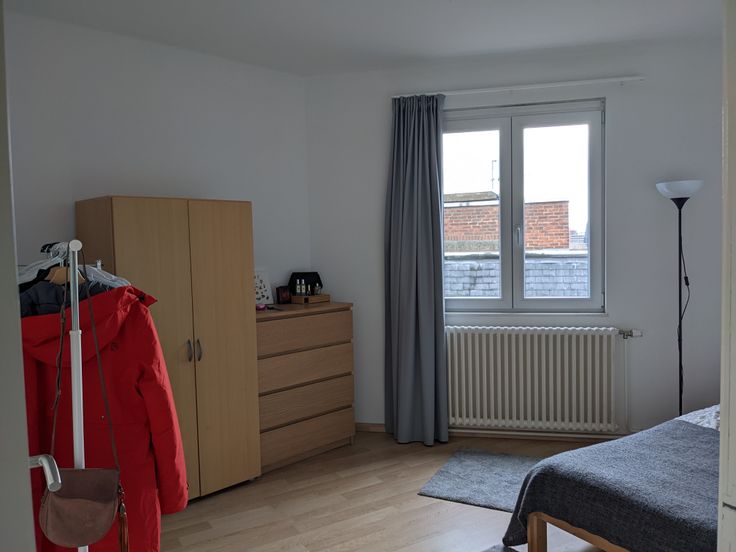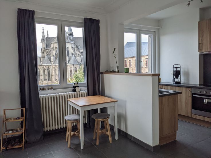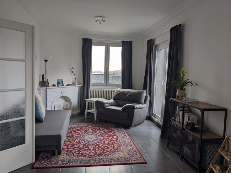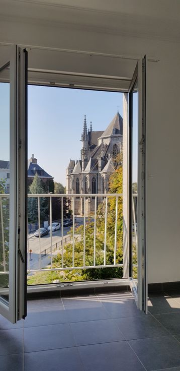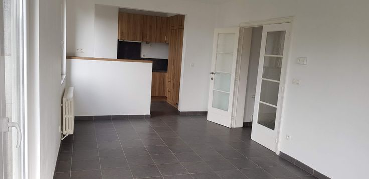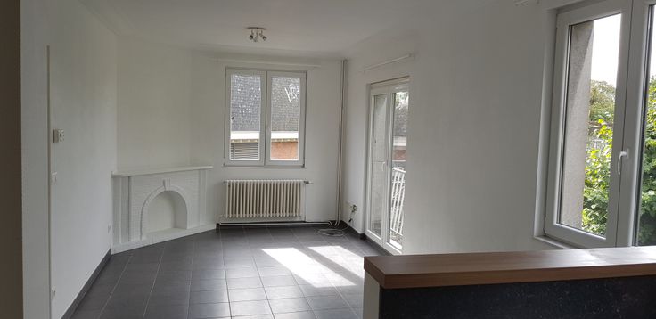 D'une superficie de 70 m2 il se compose d'un hall de nuit, 2 chambres de 14 et 9 m2, une salle de bain avec Bain/Douche, un petit balcon/cour intérieure, un wc séparé, une cuisine américaine, entièrement équipée (plaque de cuisson, four, réfrigérateur, congélateur, hotte aspirante, lave-vaisselle). Le salon de 21 m2 et la cuisine, très lumineux et plein sud jouissent d'une très belle vue sur la Collégiale Sainte Waudru et le Square Saint-Germain