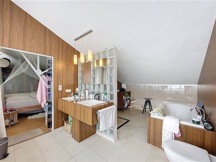 Sorry er is geen nederlandse vertaling beschikbaar. Quartier Van Volxem - Appartement loft duplex +/-180m² 2 chambres avec terrasse dans une petite copropriété 2006. Il est composé comme suit; 1er étage: un hall d'entrée, un séjour avec cuisine américaine +/-100m², un local stockage +/-9m², une salle de douche avec wc +/-7m² et une terrasse privative +/-10m². Au 2e étage: deux chambres (+/-34m² et +/-23m²) dont l'une avec dressing, une salle de bain avec douche et wc +/-16m². - Équipements: parlophone, double vitrage partout, nouvelle chaudière centrale au gaz 2024, terrasse et jardin communs, PEB: C+, électricité sera mise en conformité par le propriétaire. - Libre à l'acte.