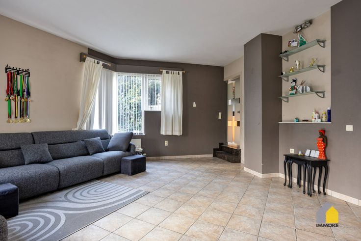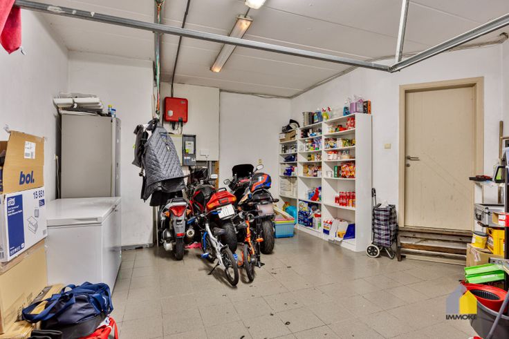 OMSCHRIJVING WONING: GLV: Inkomhal met trap naar de verdieping, gastentoilet, woonkamer met veel lichtinval, ingerichte keuken met werkeiland, vervolgens de eetkamer met grote schuifraam naar de achterliggende tuin. Achtersas met achterdeur, wasplaats met douchecabine en voorzieningen voor wasmachine en droogkast, inpandige garage met plaats voor 1 auto en fietsen en tuingereedschappen. VERD: Overloop, slaapkamer 1 met bijhorende dressing, badkamer met ruime inloopdouche en badkamermeubel, de badkamer is toegankelijk via de overloop en via slaapkamer 1, 2 ruime slaapkamers, 2de toilet. KELDER: Vaste trap naar de kelder, 3 voorraadruimtes. TUIN: Volledig omheinde tuin, voorzien van beklinkerd terras en gazon.