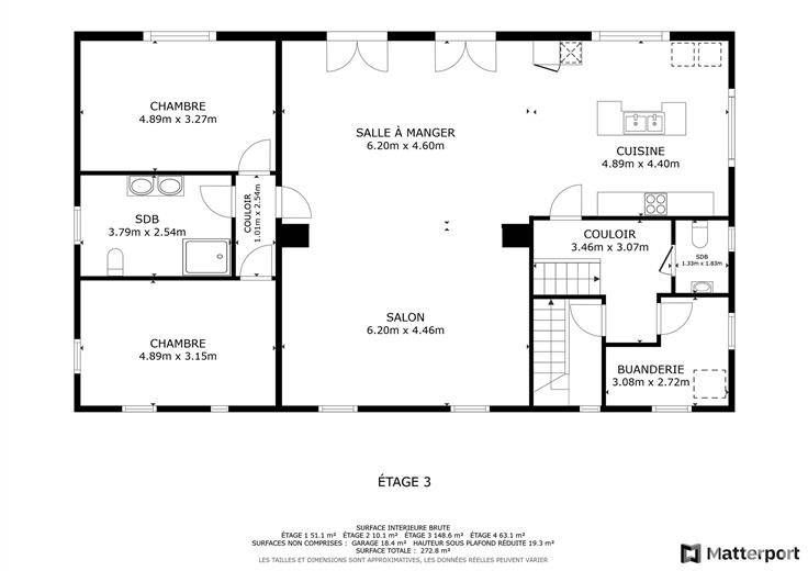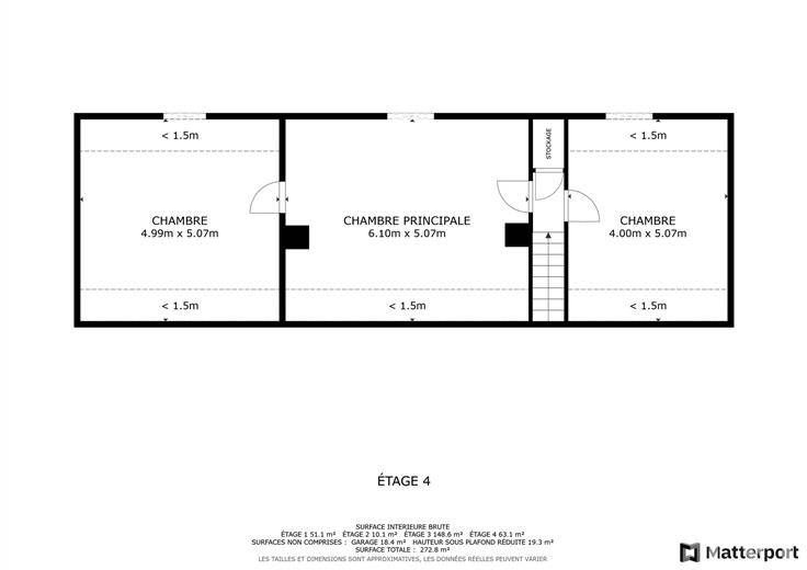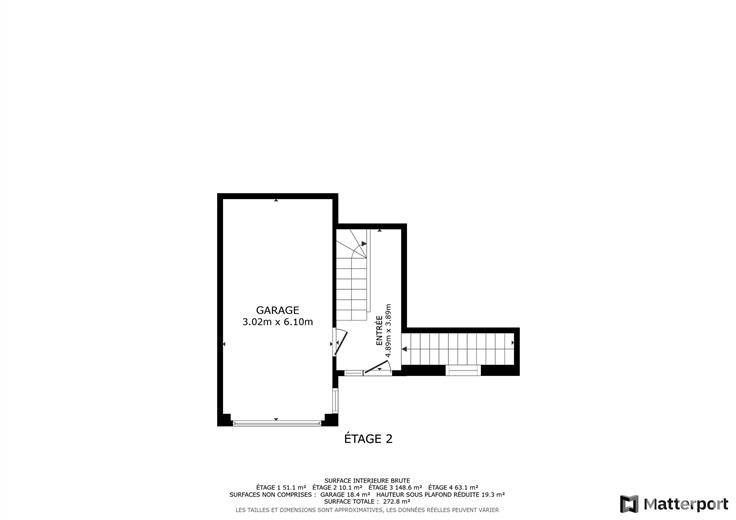 Au rez-de-chaussée, vous profitez d’un garage une voiture et d’un hall d’entrée. Le 1er étage séduit par un vaste séjour lumineux, une cuisine américaine équipée, 2 chambres, une salle de bain et un balcon. Le 2e étage complète le tout avec 3 chambres supplémentaires.