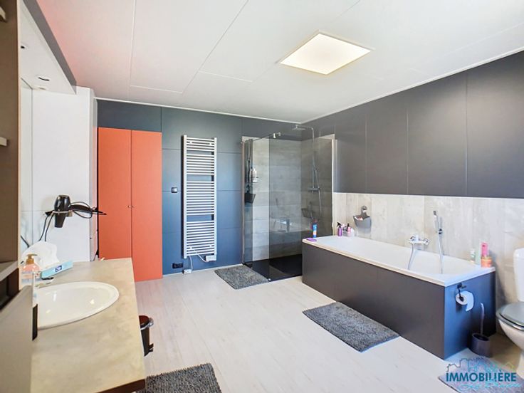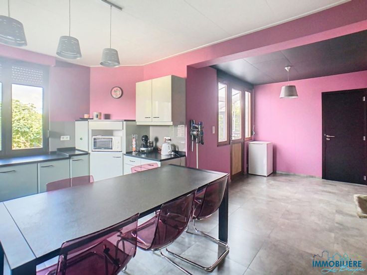Grande maison 4 chambres rénovée avec jardin à Beyne-Heusay. Elle se compose : Au rez-de-chaussée : un hall d'entrée (+/- 10m²), salon (3,7m x 4,1m), salle à manger (3,9m x 3,7m), toilette individuelle (+/- 2m²) avec placard de rangement (+/- 6m²), cuisine équipée (+/- 26m²) - taque, hotte, four, frigo et congélateur, buanderie (1,4m x 2,6m) et une véranda (4,1m x 2,3m). Au 1er étage : 2 chambres (4m x 4,6m - 3,4m x 3,8m), salle de bains (3,5m x 4,2m) - baignoire, douche et toilette, bureau (1,8m x 2,9m) Au 2ème étage : hall de nuit (+/- 3m²), 2 chambres (2,8m x 3;9m - 2,9m x 3m) et un grenier (3,9m x 3,7m) Au sous-sol : 4 caves (3,7m x 4m - 3m x 2m - 3,8m x 3,7m - 1,6m x 2,4m) Compteur électrique bi-horaire Chauffage central gaz Chaudière Vaillant Chauffe-eau électrique Châssis PVC DV de 2005 Volets électriques et manuels Toiture refaite en 2005 Façade sablée en 2005 2 citernes à eau de pluie 8 panneaux photovoltaïques Garage disponible à la location PEB n°20241202007474 - Classe D - Espec : 260 kW/m².an - Etotale : 58 687 kWh/an