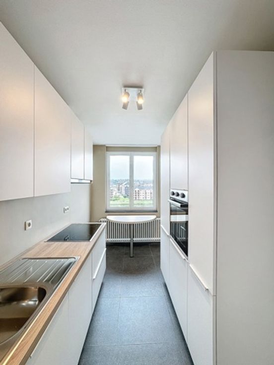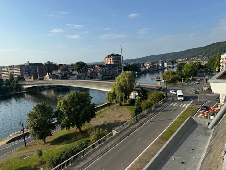Avenue Comte de Smet de Nayer, 3 à 5000 Namur En bord de Meuse, superbe et lumineux appartement rénové de 88m2 au 5ème et dernier étage avec ascenseur. Idéalement situé à quelques mètres du rond-point des Echasseurs, à proximité immédiate du centre-ville, des commerces, des écoles, des moyens de transports, de la gare et des grands axes. Composition : hall d'entrée avec grands placards intégrés - séjour - cuisine neuve super équipée (taque vitrocéramique, frigo/congélateur intégré, four, hotte,...) - 2 chambres - salle de douche neuve - WC - petit balcon à l’arrière. Parquet en chêne et carrelage. Nouveaux châssis double vitrage de dernière génération et super isolants. Accès télécom par fibre optique. Loyer : 900 € Charges : 210 € (eau, chauffage et communs) Garantie locative : 1.800€ Disponible : immédiatement Infos & visites par téléphone au 081 22 27 81. Renseignements donnés à titre informatif, et non contractuel. Les surfaces indiquées, mêmes reprises comme "habitables", correspondent aux surfaces mesurées dans le PEB.