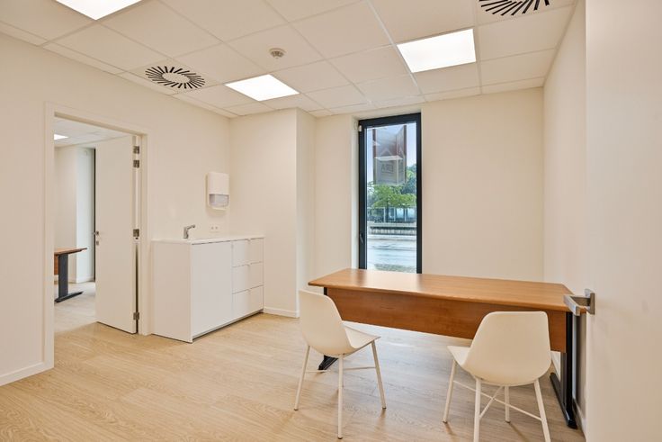 4 aparte burelen : Elk bureau is voorzien van een eigen lavabo en kan afzonderlijk verwarmd worden voor optimaal comfort en energie-efficiëntie.