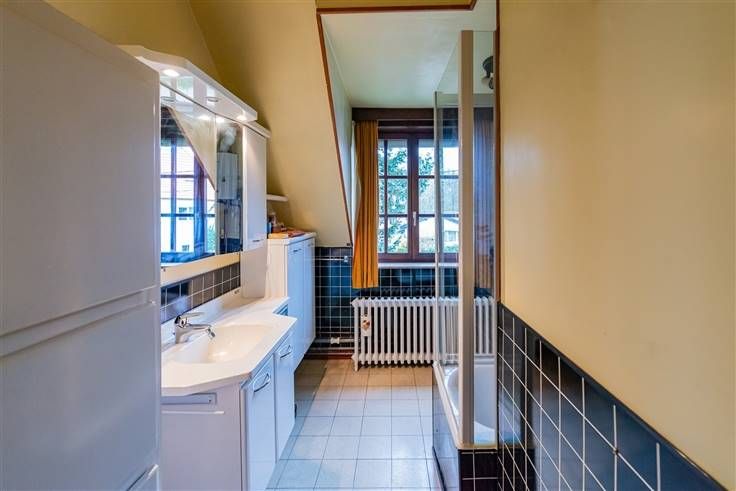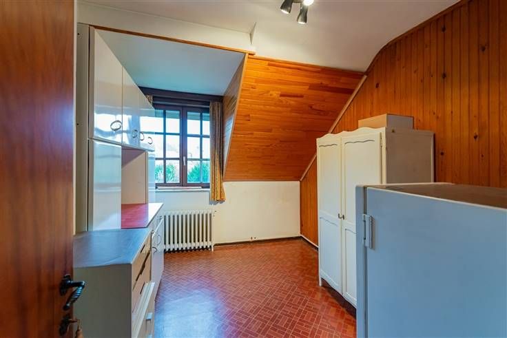 BEERSEL - Een halfopen bebouwing met veel charme en potentieel. Deze woning, gebouwd in 1954, ligt in een rustige straat zonder sluipverkeer, ideaal voor wie op zoek is naar een stille en groene omgeving. Met een netto woonoppervlakte van 112,28 m² op een perceel van 493 m² biedt deze woning tal van mogelijkheden voor renovatie en modernisering. De indeling omvat een lichtrijke woonkamer met een open haard van het merk Flam, die via een eenvoudige ingreep kan worden verbonden met de keuken om een open leefruimte te creëren. De woning beschikt over drie slaapkamers, waarvan twee zeer ruim en één perfect geschikt als bureau, hobbykamer of kinderkamer. Eén van de slaapkamers heeft bovendien een eigen open haard. De zolder biedt extra ruimte en kan worden ingericht als bijkomende slaapkamer of polyvalente ruimte. De badkamer is functioneel uitgerust met een toilet, enkele lavabo en een bad/douche. Een extra douchekamer bevindt zich in één van de slaapkamers. De buitenruimte is een oase van rust: een zonnig terras en een volledig private tuin maken het mogelijk om ongestoord te genieten van de natuur. De garage is ruim en uitgerust met een smeerput, ideaal voor autoliefhebbers of doe-het-zelvers. Er is ook voldoende parkeerruimte buiten voor twee wagens. Technisch gezien beschikt de woning over dubbele beglazing met houten raamprofielen, automatische rolluiken op de benedenverdieping en een zonneluifel aan de terraszijde. De centrale verwarming werkt op gas. Kelderruimte aanwezig.