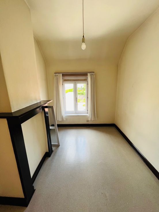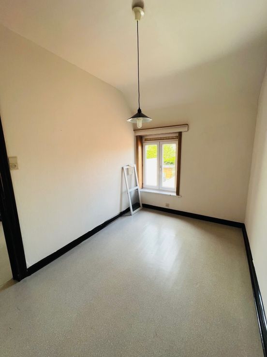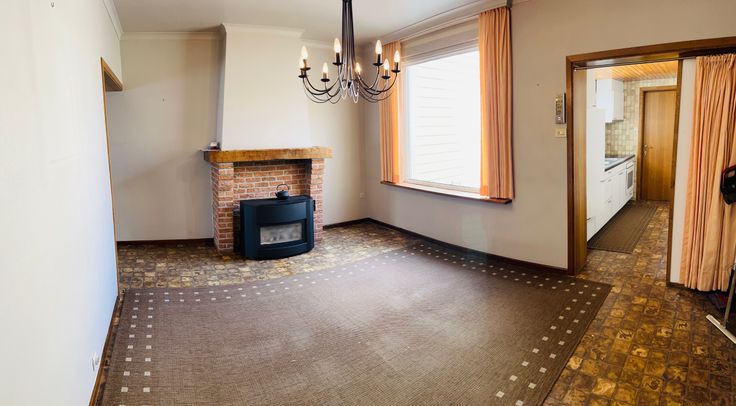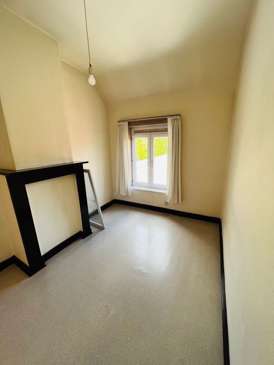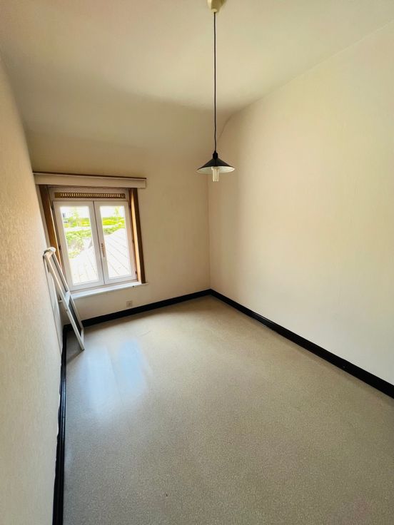 Deze centraal gelegen rijwoning bestaat uit: droge kelder, inkomhal, living met zit - en eetgedeelte, keuken, badkamer (met lavabo en douche), toilet, tuin met terras en berging, 3 slaapkamers waarvan 2 kleinere en 1 grote en geïsoleerde zolder.