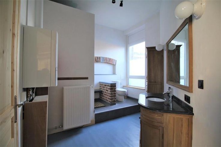 -OPTION-Maison d'habitation 3 chambres (possib. 4) entièrement rénovée avec des matériaux de qualités et un petit jardin sur l'avant. Composition: Rez: hall d'entrée avec 2 portes d'entrée, salon , cuisine équipée avec une petite cour sur l'arrière et un petit jardin sur l'avant; 1er : 1 salle de bains toute équipée, un wc séparé et 1 chambre à coucher; 2ème: 2 chambres à coucher; 3ème: un grenier (possibilité de chambre); -1: caves. Electricité conforme, chauffage central gaz, DV PVC, système d'alarme.Possibilité de réduction pour les droits d'enregistrement. PEB : E 389 KWH/m2.an n° 20130603012783