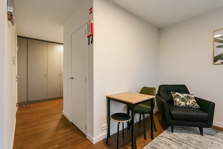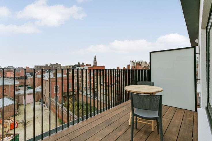 Deze volledig vernieuwde dakstudio kan u weldra bewonderen in de gerenoveerde RESIDENTIE THEMIS. Deze studio-flat is 22 m2 (+ 9 m² terras) en is volledig bemeubeld. Ze beschikt over een berging met aansluiting voor uw wasmachine en droogkast. Met een mooie badkamer en een splinternieuwe open keuken, volledig uitgerust met vaatwasser oven, etc... , beschikt u over alle comfort op een top-locatie!