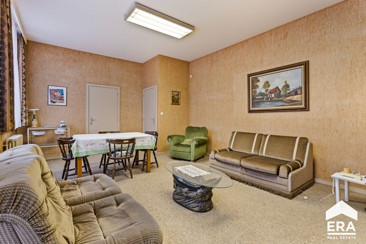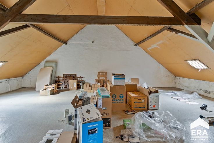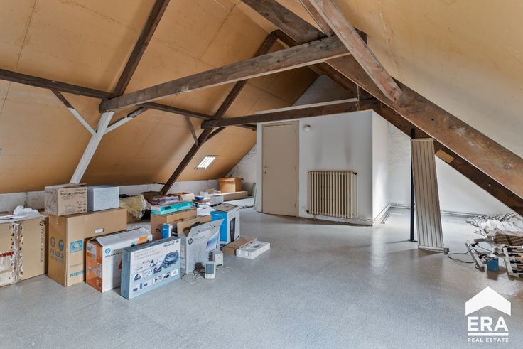 Indeling: Op het gelijkvloers komen we binnen via de inkomhal met afzonderlijke berging.Verder vinden we een grote handelsruimte met twee afzonderlijke burelen. Daarnaast vinden we een hal met toegang tot de kluizenkamer en een afzonderlijk toilet. Via de traphal gaan we naar de eerste verdieping waar er een keuken, woonkamer (/ vergaderzaal), eerste slaapkamer (/ afzonderlijk bureel), een toilet en een berging voorzien is. Via de vaste trap kunnen we naar de zolderverdieping, waar er de mogelijkheid is om eventueel twee slaapkamers plaats te geven. Buiten vinden we een magnifieke, zuid-gerichte tuin terug met een buitenberging.