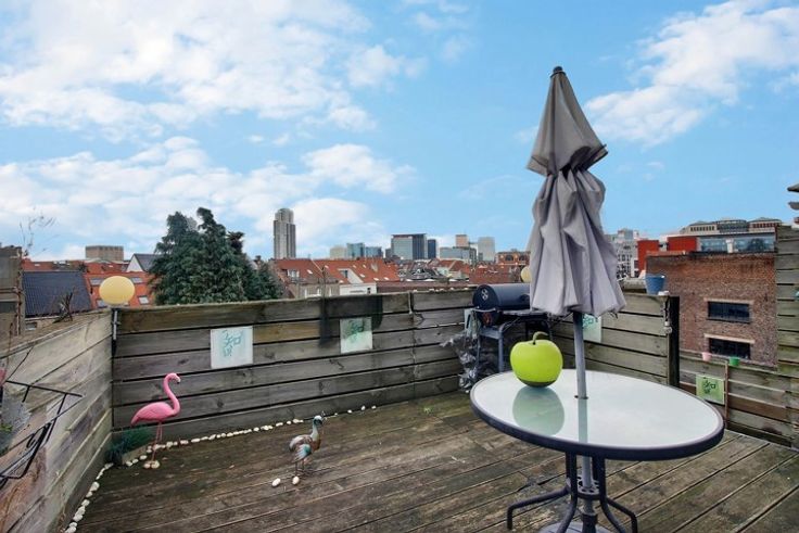 Tour et Taxis : Retrouvez ce beau duplex ( deuxième et troisième étage ) dans une petite copropriété. Il est composé comme suit : Au deuxième étage : Un hall d'entrée - Un Living - Une salle à manger - Une cuisine équipée - Une première chambre de : +/- 12m². Au troisième étage : Une deuxième chambre de 18m² - Une salle de douche - Une troisième chambre de 20m² - Une terrasse de +/-25m². Au sous-sol : Une cave - Techniques : Double vitrage en P.V.C. - Chauffage central au gaz - Tous les compteurs sont individuels - Parlophone - PAS DES CHARGES COMMUNES - PEB Catégorie : G / Consommation énergétique : 354kWh/m² Emission de CO2 : 76Kg CO2/m² - Infos et visites ou 02/537.21.21 ou info@century21azur.be