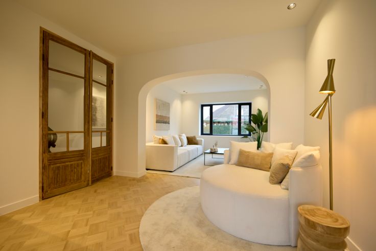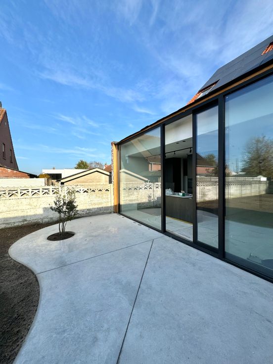 Dit karaktervolle pand werd ingrijpend gerenoveerd en werd voorzien van een volledig nieuwe uitbouw achteraan. Voor wie op zoek is naar een atypische woning met luxe afwerking, vindt hier zijn kans.