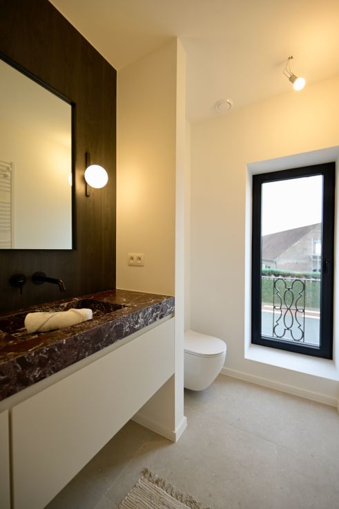 Voorzien van alle laatste nieuwe technieken, warmtepomp (met ook koeling), vloerverwarming, zonnepanelen, etc. Aldus superenergiezuinig met een vooropgestelde E-peil van E48.