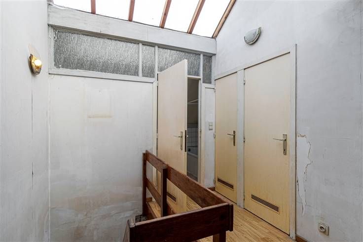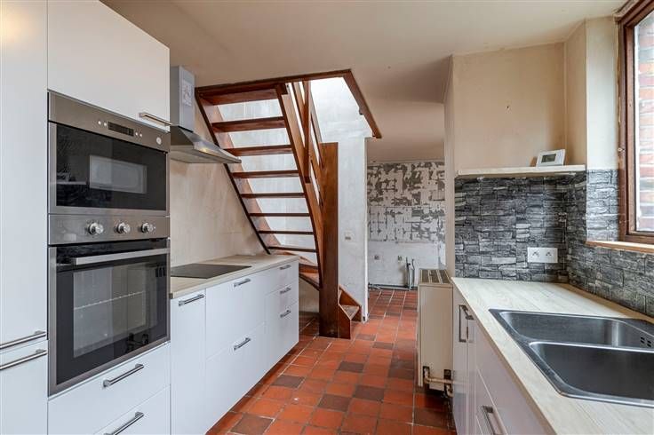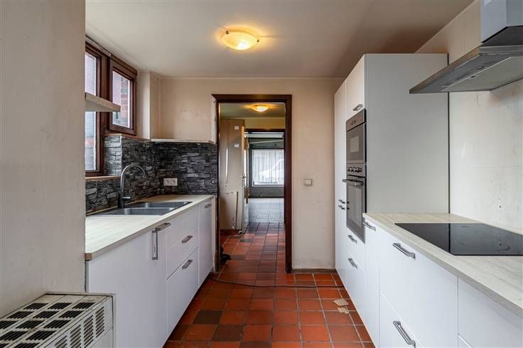 Woning (120 m²) met 3 slpks., garage en tuin. Met de ligging in het centrum geniet je van winkels en openbare vervoersmogelijkheden in de nabije omgeving en bereik je de snelweg en het havengebied in slechts enkele minuten. De halfopen bebouwing is verder af te werken. Wel is het dak reeds geïsoleerd langs de binnenkant en is er in 2022 een nieuwe verwarmingsketel geïnstalleerd. De woning beschikt over een solide basisconstructie zonder structurele gebreken en over dubbele beglazing in hout. Het gelijkvloers bestaat uit een woonkamer (23 m²), gevolgd door een tussenruimte/hal (7 m²) met berging. Achteraan treffen we de vernieuwde keuken (20 m²), die uitgerust is met alle hedendaags comfort. Een mooi element in de woonst is de open traphal met lichtstraat, waardoor er hier veel daglicht binnenvalt. Op de eerste verdieping grenzen de 3 slpks., (11 m², 13 m² en 14 m²) en ook hier is er een lichtstraat aanwezig. Verder zijn er nog een wc, stooklokaal/berging en badkamer (8 m²) met ligbad en lavabo. Tot slot beschikt het pand nog over een garage/atelier (50 m²) en noord-oost-georiënteerde tuin (155 m²). Ben je op zoek naar een pand met veel potentieel? Boek nu je afspraak in en kom met eigen ogen ontdekken wat deze woning te bieden heeft! De buurman van de linkse woning heeft een recht van doorgang om zijn perceel te bereiken. Deze doorgang loopt direct achter het huis. Bewoonbare opp. 125 m² ref.: bruto vloeropp. Voor meer info of een gratis schatting surf naar www.hansimmo.be