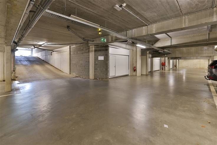 De garage 24/24 toegankelijk via de inrit met sectionale poort ter hoogte van het gebouw op de Van Peborghlei.